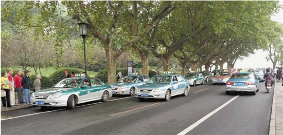 無獨有偶,本報記者上周日在孤山路,也遇到了“藍瘦香菇”的一幕:盡管路邊的游客不停上前詢問,卻幾乎沒有一輛出租車愿意載客,要不司機就是獅子大開口。