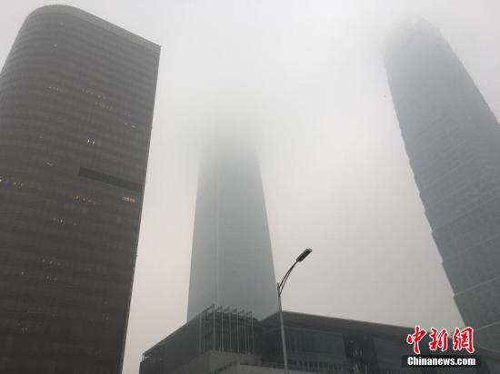 10月19日消息,昨天16時,北京市氣象臺發(fā)布霾黃色預警信號,預計昨日傍晚至19日北京大部地區(qū)有中度霾,南部地區(qū)有重度霾。圖為國貿附近被霧霾籠罩,能見度降低。富田 攝