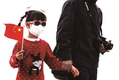 昨天霧霾繼續(xù)籠罩京城,很多孩子都戴上了大人的口罩 攝影/本報(bào)記者 郝羿