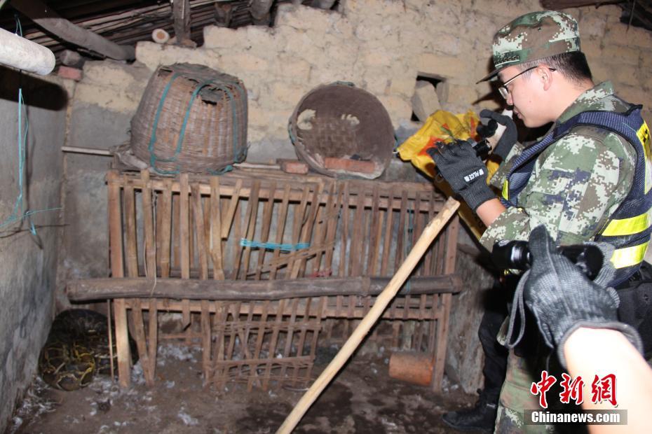 10月20日,廣西防城港那良邊防派出所官兵捕獲一條闖入村民家中偷吃鴨子的蟒蛇,蟒蛇長(zhǎng)約3米重達(dá)30余斤。據(jù)介紹,該條蟒蛇被發(fā)現(xiàn)時(shí)昂著頭,吐著信子,高度警惕,當(dāng)邊防官兵抓住蟒蛇尾部將其拖出空曠地帶時(shí),受到驚嚇的蟒蛇從嘴里吐出了3只鴨子。目前,該條蟒蛇已被放歸山林。羅明前 攝