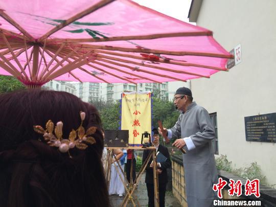 中新網(wǎng)杭州10月22日電(見習記者 陳麗莎)搭上竹架子,敲響小銅鑼,發(fā)噱的言語,通俗的唱句,小熱昏演員杜傳富正用他一口地道的杭州方言演繹著獨屬小熱昏的詼諧。在杭州小河直街歷史文化街區(qū)內(nèi),這一唱可吸引了不少圍觀群眾。