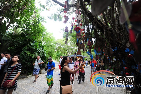 據(jù)介紹,天涯民俗特色演出項(xiàng)目于每天上午9:00-11:30;下午15:00-17:30在景區(qū)棕櫚道邊、“執(zhí)子之手、與子偕老”石刻旁演出,以生態(tài)綠色的自然和天涯海角內(nèi)的景色作為演出舞臺(tái)背景,用樹(shù)葉、嘟嚕、鼻簫、二胡、高胡、葫蘆絲、哩咧、叮咚、嗶啰(黎音)、口弓等十余種具有民族特色的樂(lè)器,演繹最具民族特色、最淳樸自然、最生態(tài)本色的黎族樂(lè)曲,使原生態(tài)的黎族歌舞與真實(shí)的山水實(shí)景交融,讓游客們?cè)谟斡[途中感受黎族音樂(lè)的魅力!疤刑厣,難得一見(jiàn)!眮(lái)自浙江在線(xiàn)的編輯施菲菲驚嘆道。