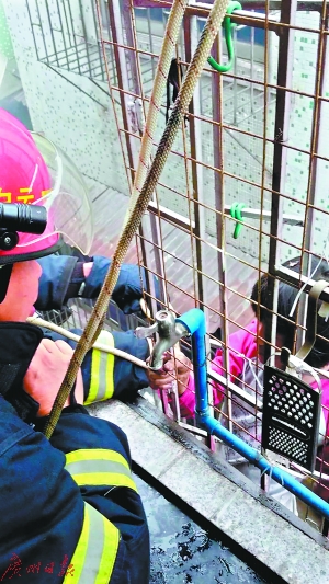 于是,消防員趕緊剪斷鎖頭,打開(kāi)安全門(mén),將打好繩結(jié)的安全繩逐一遞交給男子,讓他給女兒和自己做好安全保護(hù)。隨后,在安全繩的牽引保護(hù)下,消防員將父女倆先后救出!盀榱吮Wo(hù)女兒,那位爸爸的背部和兩臂外側(cè)有受傷,被燒得發(fā)紅脫了皮。而女兒穿著外衣,幾乎沒(méi)有受傷!