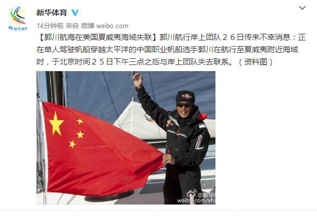 騰訊體育 北京時(shí)間10月26日 據(jù)新華社消息,正在單人駕駛帆船穿越太平洋的中國職業(yè)帆船選手郭川在航行至夏威夷西約900公里海域時(shí),于北京時(shí)間25日15時(shí)之后與岸上團(tuán)隊(duì)失去聯(lián)系。美國空軍的兩架救援偵查機(jī)和海軍的救援船只已經(jīng)出發(fā),開始搜救工作。根據(jù)目前的最新消息,郭川的帆船已經(jīng)找到,但未找到其本人。美國海軍確認(rèn)已派兩艘船馳援,搜救人員將登上三體船檢查。