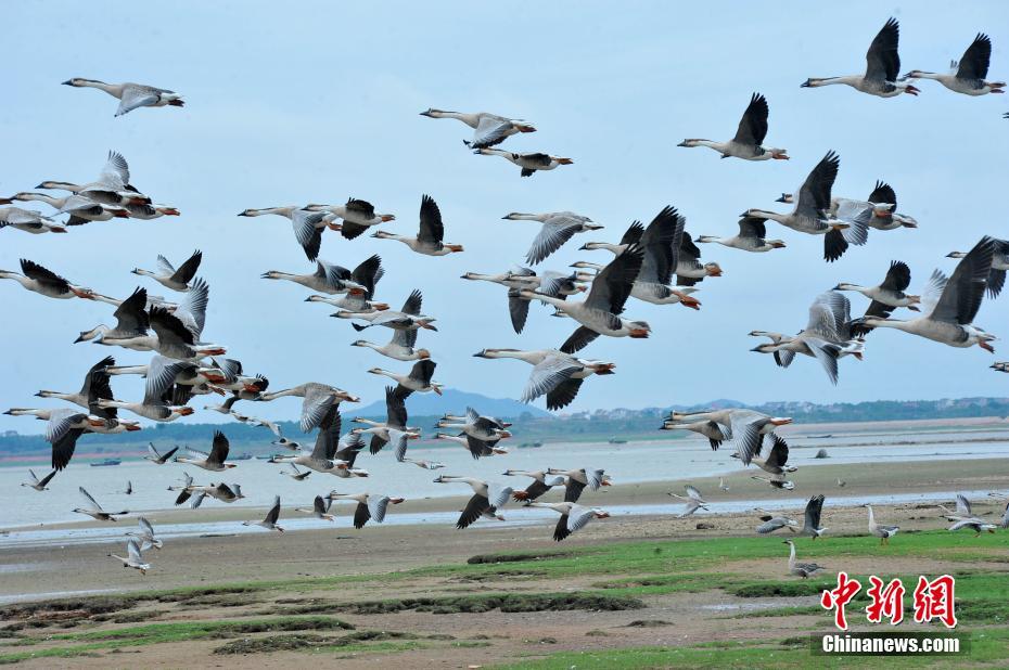 10月29日,大批鴻雁飛抵江西省鄱陽縣白沙洲鄉(xiāng)鄱陽湖濕地覓食越冬,場面蔚為壯觀。連日來,受近期冷空氣影響,中國最大淡水湖江西省鄱陽湖,迎來了大批鴻雁飛抵越冬。在鄱陽縣白沙洲國家級鄱陽湖濕地公園濕地草洲,成千上萬只候鳥陸續(xù)飛抵覓食棲息。目前,當地正全力做好候鳥保護工作,確保候鳥在鄱陽湖安全越冬。 卓忠偉 攝