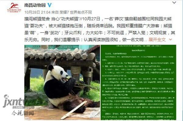 近日,有網(wǎng)友爆料,27日下午在南昌動物園熊貓館內 ,一名男子突然翻越圍欄跳入館中,與大熊貓扭打在了一起,并被大熊貓摟抱壓倒,隨后僥幸逃脫。目前,大熊貓身體無恙,涉事男子事后不知所蹤。