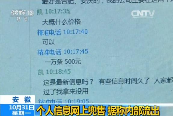 個(gè)人信息網(wǎng)上兜售 據(jù)稱內(nèi)部流出