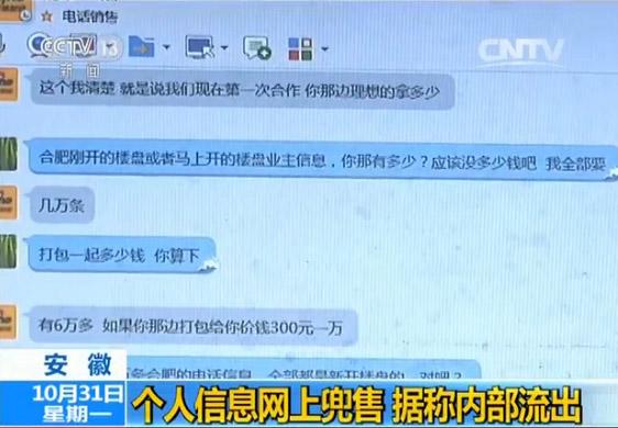 央視記者通過QQ聯(lián)系上一名倒賣個(gè)人信息的人員,表示想買一些安徽合肥的小區(qū)業(yè)主信息,對(duì)方立即開價(jià),1萬條信息500塊錢,如果要的數(shù)量多,只要300塊錢就能買到1萬條。記者匯款之后,對(duì)方很快發(fā)過來一張表格,上面有2000多位業(yè)主的信息,包括業(yè)主姓名、電話、房號(hào)等,一應(yīng)俱全。記者嘗試著撥打之后,發(fā)現(xiàn)大多數(shù)內(nèi)容都是真實(shí)的。