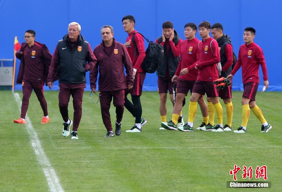 11月3日下午,里皮和他的團(tuán)隊(duì)走進(jìn)集訓(xùn)現(xiàn)場(chǎng)。當(dāng)日,中國(guó)國(guó)家男子足球隊(duì)在新任主帥里皮的帶領(lǐng)下,在昆明海埂訓(xùn)練基地進(jìn)行首訓(xùn)。 中新社記者 李進(jìn)紅 攝