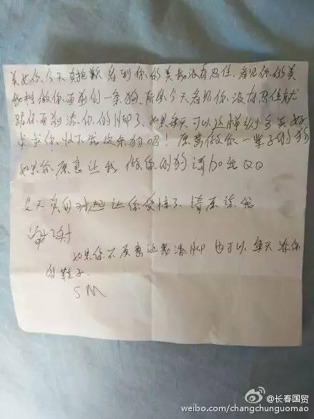 智女士一腳將男子踹開,向隔壁鄰居求救。男子見狀迅速逃離現(xiàn)場。十幾分鐘后,智女士穩(wěn)定情緒下樓查看,竟看見了一張令她瞠目結(jié)舌的“道歉求愛書”:上邊寫,想做她的一條狗,舔鞋也行......