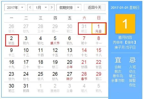 2017年1月1日(星期日)為國家法定節(jié)假日。
