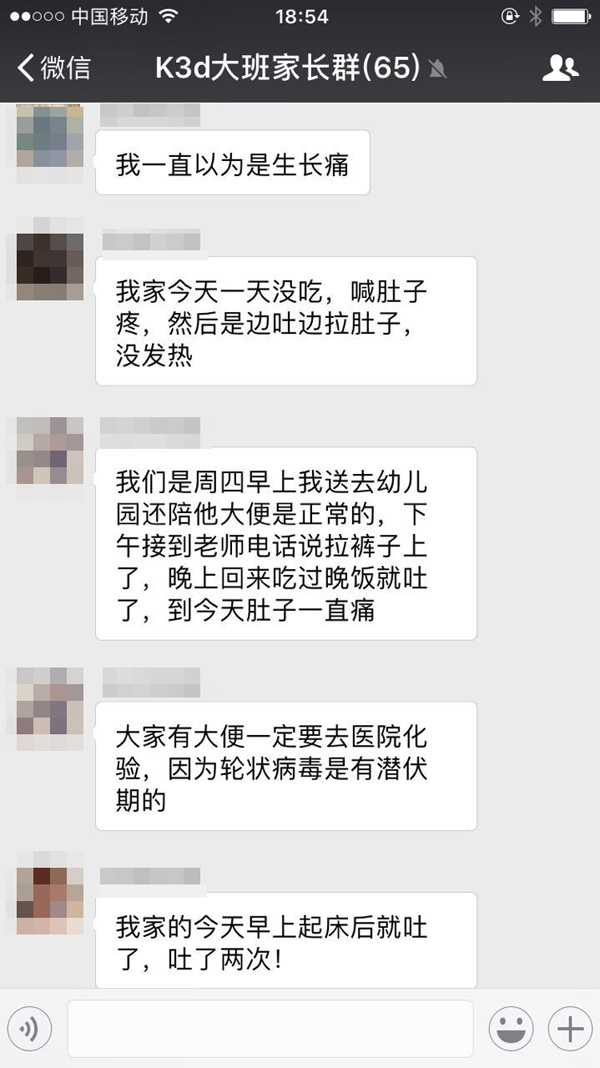 “當時我們也沒多想什么,以為只有我家孩子這樣!碑斕焱砩贤砩7點左右,班級家長微信群陸續(xù)有家長稱自己的孩子發(fā)生了嘔吐、肚子疼等情況。張溢才意識到,貝貝所在班級的好多孩子都出現(xiàn)了嘔吐等現(xiàn)象。