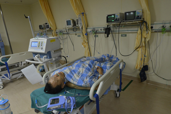 S32申嘉湖高速追尾事故中的傷者張凱軍躺在病床上。11月6日晨,浦東新區(qū)區(qū)域內(nèi)S32高速公路發(fā)生多起追尾交通事故。截止上午11點(diǎn)30分,車(chē)禍已經(jīng)導(dǎo)致4死,40傷,4名死者為兩女兩男。澎湃新聞?dòng)浾咴谄謻|醫(yī)院ICU病房見(jiàn)到了S32申嘉湖高速追尾事故中的傷者張凱軍,他回憶說(shuō),追尾事故發(fā)生后,他立即下車(chē)緊急呼救,讓自己貨車(chē)前后的人下車(chē),就在這時(shí)他被后面一輛大車(chē)撞倒,目前右下肢截肢。他說(shuō)“當(dāng)時(shí)來(lái)不及了,也看到大車(chē)開(kāi)過(guò)來(lái)了,但沒(méi)想那么多,為了大家的安全,就下車(chē)讓別人趕緊下車(chē)逃離!