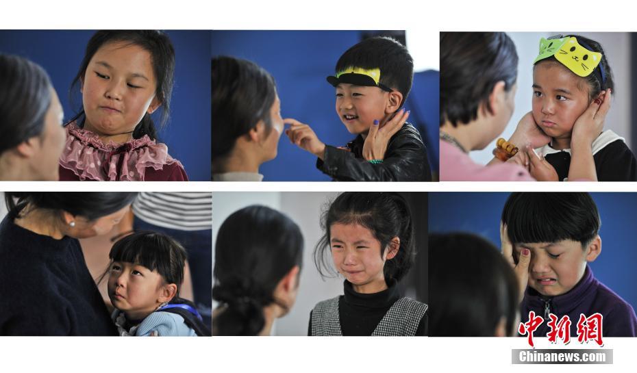 11月6日,昆明一教育機(jī)構(gòu)策劃了一場(chǎng)親子“試驗(yàn)”,8組家庭的母親化妝成20年后的模樣,其孩子蒙上眼罩后來(lái)到母親身前,再摘掉眼罩與母親對(duì)視。據(jù)該活動(dòng)策劃者萬(wàn)銳介紹,策劃該活動(dòng)的目的在于拉近現(xiàn)代社會(huì)孩子與父母之間的親子關(guān)系,希望孩子能感受到養(yǎng)育的不易和珍惜親情。圖為孩子們看到母親“老去”的模樣后表情各異,真情流露。(拼版圖片) 中新社記者 任東 攝