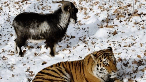 一只叫“帖木兒”的山羊被送到了虎園,本來(lái)應(yīng)該被當(dāng)成食物的它居然和老虎“阿穆?tīng)枴卑l(fā)展了一段不尋常的感情。