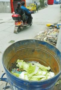 垃圾桶里還有前幾天剩下的白菜。