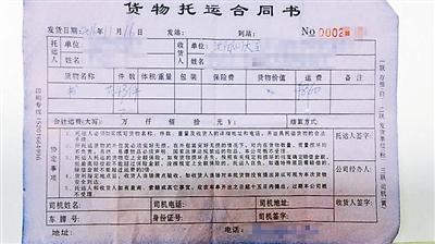 蘇先生提供的資料顯示,所謂的“貨物托運合同書”實際上是一張收據(jù)單。貨物被運走后,蘇先生仔細看了下這份“合同書”,發(fā)現(xiàn)上面未加蓋對方公司的印章,也沒有注明運費“已付”,單據(jù)上更沒有這家物流公司的具體地址。感覺“不太放心”,蘇先生隨即撥打了運貨人的電話,“想問問看能不能把貨拿回來,不發(fā)了!痹偃穯栂,對方表示要拿貨需要自取,并留下了一個位于大興區(qū)的物流園區(qū)的地址。