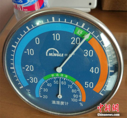 11月17日,北京天通苑一居民家中溫度計顯示室溫超過20度。中新網(wǎng)邱宇 攝