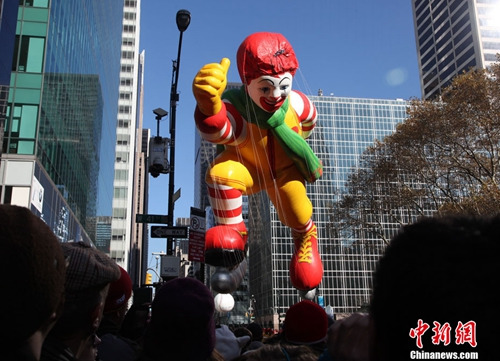 資料圖:紐約舉行梅西百貨感恩節(jié)大游行。中新社記者 阮煜琳 攝