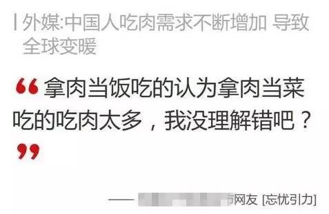 一外媒稱中國人吃肉增多致全球變暖:溫室氣體增加。