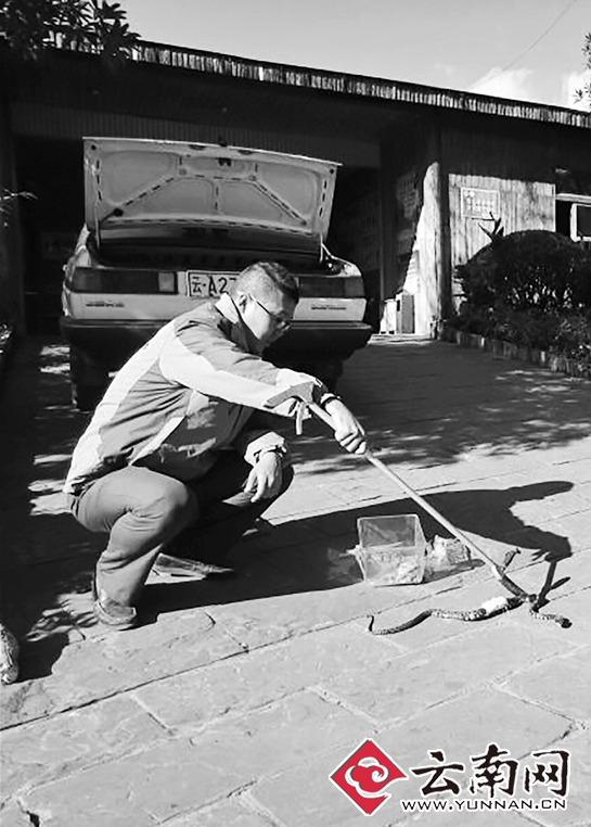 “蛇,有毒蛇,麻煩你們森林公安前來(lái)處理。”24日中午12時(shí),位于昆明市嵩明縣軍馬場(chǎng)職教基地的一學(xué)院保衛(wèi)處干部打來(lái)電話求助。