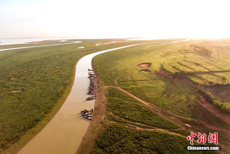 鄱陽湖是中國第一大淡水湖,為典型的季節(jié)性湖泊。11月28日,航拍江西鄱陽湖都昌境內(nèi)冬季水系。當(dāng)上游五河(饒河、贛江、信河、修河、撫河)水系流經(jīng)都昌縣境內(nèi)時,水面漸漸變得開闊,形成了鄱陽湖上的帶狀水系景觀,在冬日呈現(xiàn)出玉帶環(huán)繞、澤豐水美的壯麗風(fēng)景。傅建斌 攝