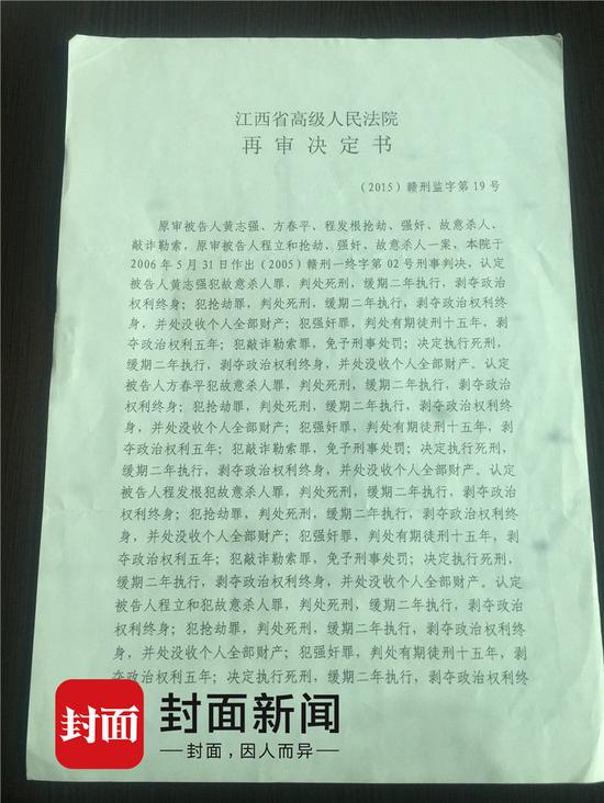 何為“具體情況”?判決書未加說明。記者注意到,在一審、重審判決書中,檢方指控黃志強和方春平時,稱兩人還涉及1999年9月8日晚的一起搶劫殺人輪奸案。不過終審判決中,省高院認定:在樂平一涼亭內,黃、方伙同程文財殺死鄒某某、輪奸熊某,證據(jù)不足,不予認定。