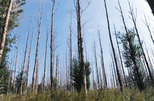8月21日,在河北省張北縣國營中心林場,成片的楊樹已經(jīng)枯死