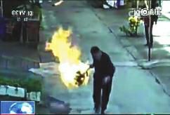 近日,江蘇省無錫市一位居民家中的煤氣罐突然著火,正當(dāng)大家驚恐萬分時(shí),一名男子把火球一般的煤氣罐拖出了居民區(qū)。