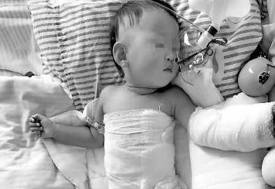 孩子很快便被送到了吉林大學(xué)第一醫(yī)院,診斷書上寫著孩子燙傷面積35%。最嚴(yán)重的是左胳膊,因?yàn)闋C傷嚴(yán)重影響了血管,當(dāng)天晚上便做了緊急手術(shù),以保證不被截肢。雖然手術(shù)很順利,但因?yàn)闊齻娣e太大,孩子隨時(shí)有生命危險(xiǎn),不得不住進(jìn)了重癥監(jiān)護(hù)室。