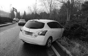 前天上午,北京晨報(bào)記者來到事發(fā)路段,由于氣溫逐漸升高,路面并未見到結(jié)冰現(xiàn)象,但仍很潮濕。該路段為五環(huán)路駛出通往奧林東路的拐彎處,道路左側(cè),金屬網(wǎng)護(hù)欄有一處被撞壞扭曲。此外記者注意到,該路段行車道只有一條,且由于旁邊綠化帶樹木的遮擋,行車視線不佳,途經(jīng)此處的車輛均減速。