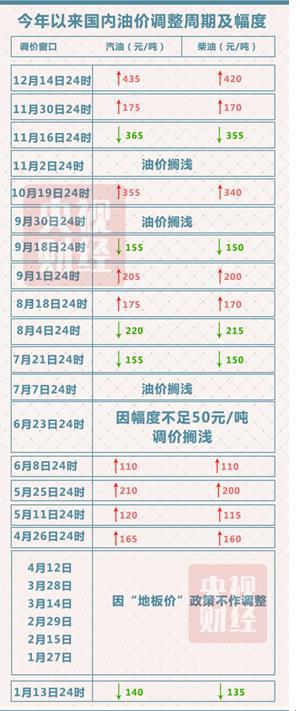 (央視財經(jīng)記者 平凡 張婷敏)12月14日24時,國內(nèi)成品油第24次調(diào)價窗口再次開啟。受產(chǎn)油國15年來首次聯(lián)手減產(chǎn)影響,國內(nèi)油價將迎來年內(nèi)第九次上調(diào)。記者剛剛從國家發(fā)改委獲悉:汽油每噸將上調(diào)435元,柴油每噸將上調(diào)420元。