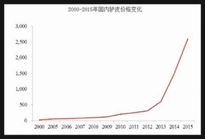 2000-2015年國內(nèi)驢皮價格變化