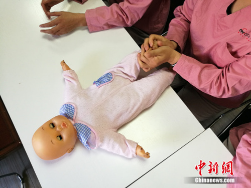 圖為月嫂培訓(xùn)中使用的嬰兒模型。中新網(wǎng)李卿 攝