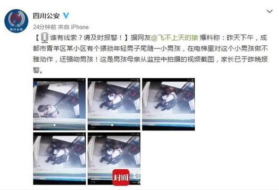 原標(biāo)題:網(wǎng)曝成都一男子電梯里強吻男孩 警方已介入調(diào)查