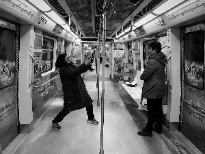 昨天,乘客在16號(hào)線(xiàn)的冬奧會(huì)主題車(chē)廂內(nèi)留影。北京晨報(bào)記者 王巍/攝
