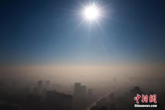 1月2日,霧霾暫別北京,藍(lán)天漸現(xiàn),撥霧見日。中新社記者 侯宇 攝