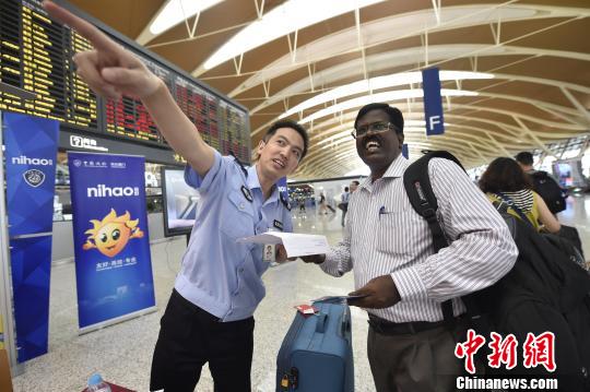 邊檢民警為旅客提供指引服務(wù) 。董權(quán)輝 攝