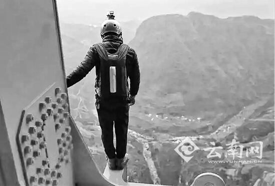 8日8時,昭通籍29歲小伙亞當(dāng)來到宣威市普立鄉(xiāng),從全長1341.4米(云南側(cè)長728米)、橋面高度565米的世界第一高橋北盤江大橋上跳下,成功完成低空跳傘挑戰(zhàn),成為在世界第一高橋上完成極限挑戰(zhàn)的第一人。