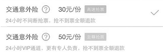 和前面兩個(gè)網(wǎng)站相比,“藝龍旅行”隱晦一些,它的搶票服務(wù)涵蓋在“交通意外險(xiǎn)”套餐內(nèi),供大家自由選擇,購(gòu)買(mǎi)20元/份的“交通意外險(xiǎn)”,對(duì)應(yīng)“快速搶票”,購(gòu)買(mǎi)30元/份的“交通意外險(xiǎn)”,對(duì)應(yīng)“高速搶票”,購(gòu)買(mǎi)50元/份的“交通意外險(xiǎn)”,對(duì)應(yīng)“至尊搶票”,套餐價(jià)格越高,可享受的搶票服務(wù)越好。