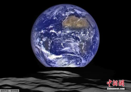 地球右上方大塊褐色地區(qū)為撒哈拉沙漠,左側(cè)可以清晰看到大西洋和太平洋。在月球上,可以看到火山口康普頓。這一照片是由10月12日拍攝的一系列照片合成的。