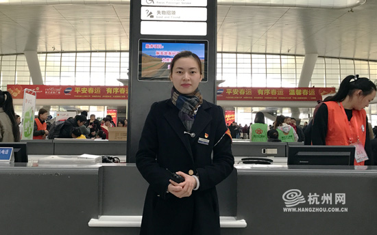 杭州網(wǎng)訊1月16日是春運(yùn)的第四天,杭州兩大火車站預(yù)計(jì)發(fā)送旅客18萬人,其中杭州東站發(fā)送13.4萬人。在忙碌春運(yùn)期間,一群90后的女生已經(jīng)成為了火車東站奮斗在一線的新力量,她們用自己的青春與活力服務(wù)在春運(yùn)的“臺前幕后”。