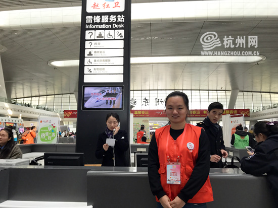 中午11點(diǎn)30分,記者來到趙紅衛(wèi)服務(wù)臺,志愿者還在耐心回答旅客的問題,對他們而言是沒有飯點(diǎn)的,作為他們其中的一員,96年出生的徐子晴還在讀大三,這是她在杭州火車東站服務(wù)的第三個年頭。