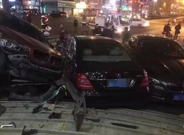 1月21日晚上11點(diǎn)多,杭州不少人的朋友圈被一起多輛豪車(chē)相撞的消息刷屏了。從圖片上看,發(fā)生碰撞的車(chē)傷得不輕,兩輛大奔兩輛寶馬,其中暗紅色寶馬越野車(chē)的前保險(xiǎn)杠整個(gè)掉了下來(lái)。