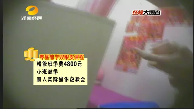 根據(jù)網(wǎng)絡(luò)廣告,記者來到株洲的“華莉”微整形培訓(xùn)機(jī)構(gòu)表示想要參加雙眼皮課程。這里的負(fù)責(zé)人肖姐十分警惕,在多番核實(shí)記者身份后,最終同意記者約見總負(fù)責(zé)人劉老師。這位劉老師告訴記者,零基礎(chǔ)交錢就可以參加培訓(xùn),機(jī)構(gòu)的工作人員表示精修班學(xué)費(fèi)4800元,小班教學(xué)真人實(shí)際操作包教會(huì)。