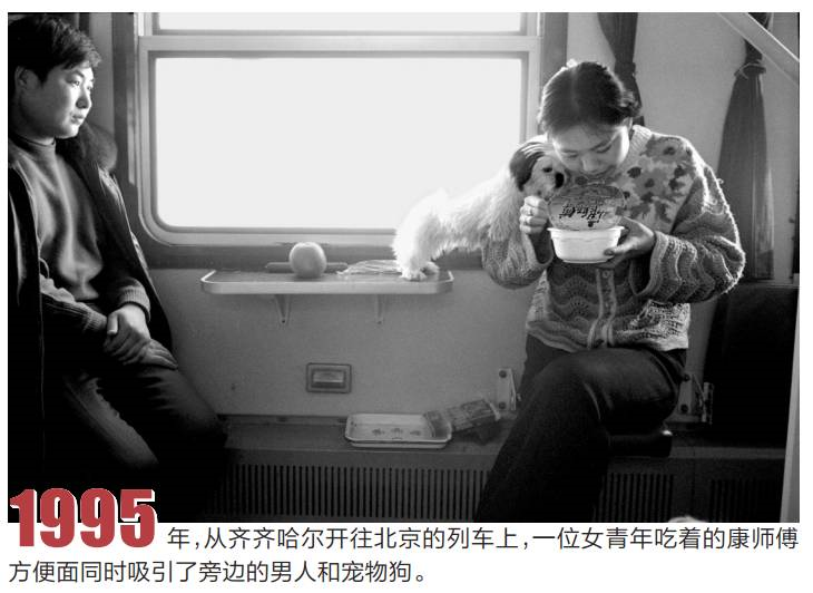 74歲的自由攝影師王福春觀察到,方便面在火車上盛行,正是從90年代初開始的。他曾是一名鐵路檢車員,常年跟著火車跑。1977年偶然開始拍攝火車上的見聞,第二年迎來改革開放,王福春沒有想到,這會(huì)給他鏡頭下的所有事物都帶來日新月異的變化,使得他一路拍到現(xiàn)在拍了整整40年。他將部分拍攝火車的照片整理成書出版,名叫《火車上的中國人》,后因此成名獲獎(jiǎng)。