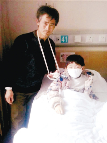 小章章和手受傷的父親在一起
