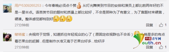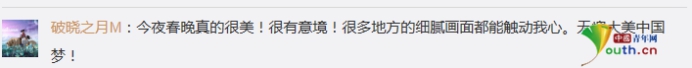 網(wǎng)友“王様Ver”更是留言:今年春晚真的好看,加油加油,向世界展現(xiàn)我大中華雄風(fēng)。