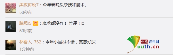 不過也有網(wǎng)友覺得美中不足,今年節(jié)目中缺少了雜技和魔術(shù)。這或許就成為下一年春晚的進(jìn)步空間了呢。