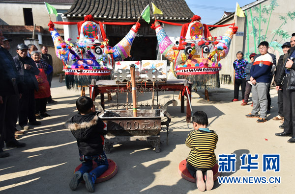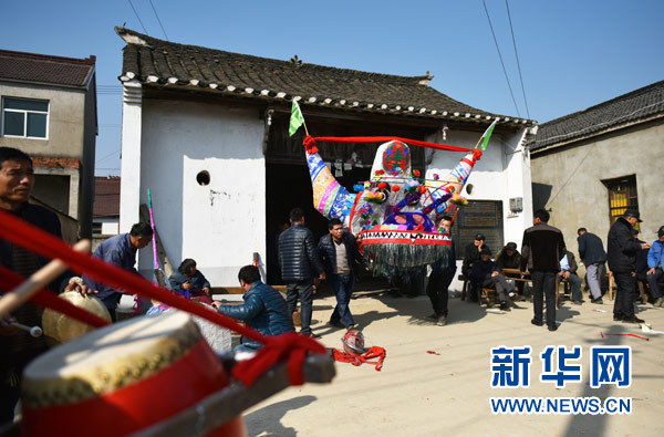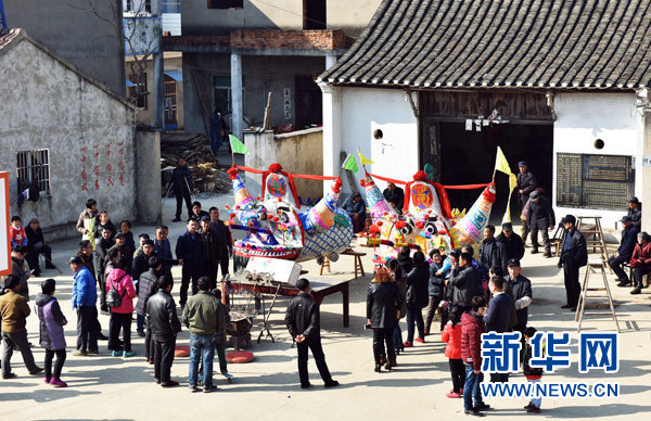 新華網(wǎng)南京1月26日電(張本甫 王璐 陶燕燕 朱露鑫)糊黃紙、剪邊角、裝蠟燭……昨天是大年二十九,當(dāng)天下午,新春走基層成員在南京市溧水區(qū)洪藍(lán)鎮(zhèn)何林坊村看到,村民們正在為大年初四晚上開始的舞龍燈做準(zhǔn)備。他們要連續(xù)3個晚上舞龍燈。據(jù)了解,溧水區(qū)民俗文化保存良好,年味十足,除了舞龍燈,現(xiàn)存的民俗文化還有舞獅、劃龍船、跳鐺鐺、打社火、拋鈸、跳花籃等。